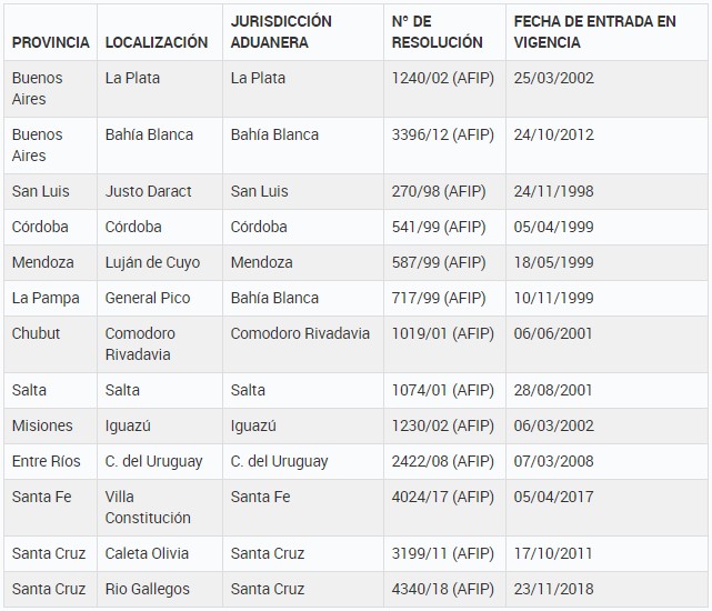 Here is an online free atlas of world free zones showing the features of the Argentine Zonas Francas:
