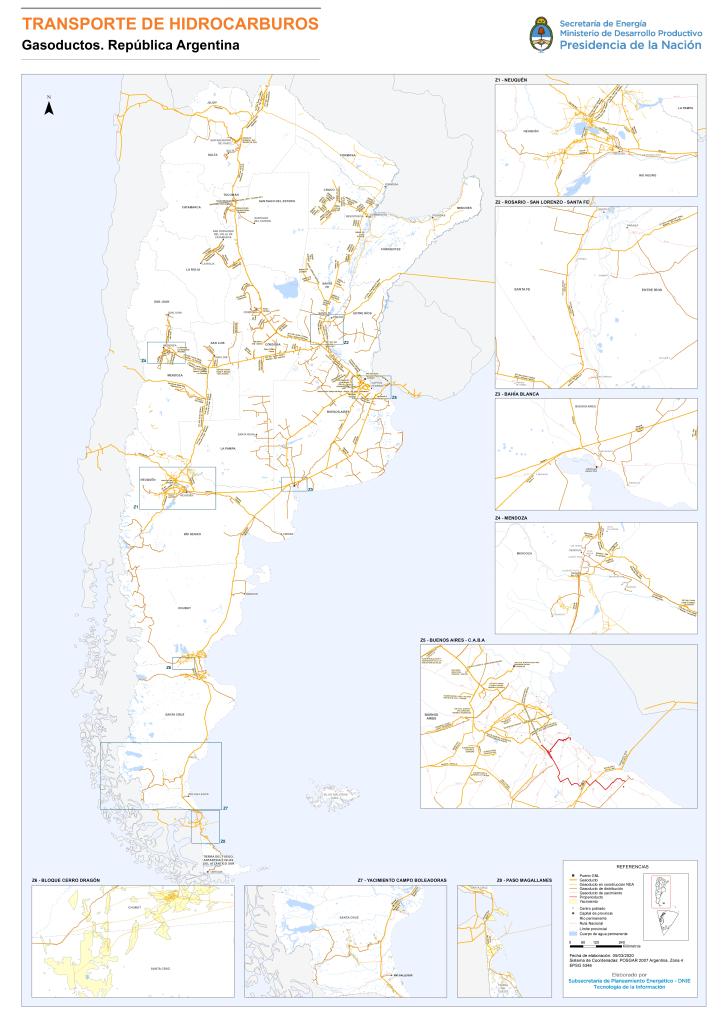 La red de gasoductos principales en Argentina está constituida por cinco sistemas: I- Del Norte II- Centro-Oeste III- Del Oeste IV- Neuba V- Del Sur.