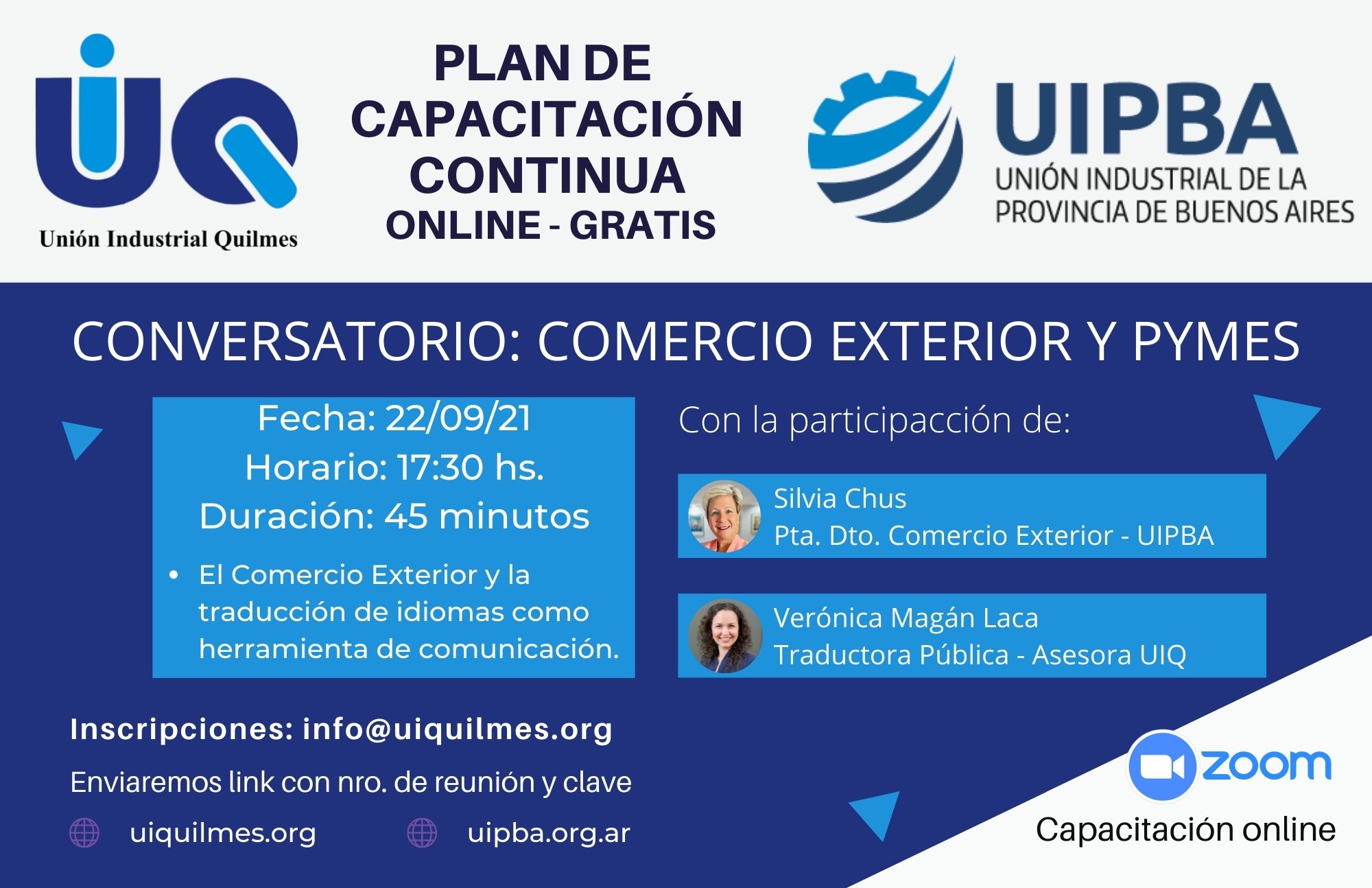 Llegamos a otro 30 de septiembre y, este Mes de la Traducción, tuvimos la oportunidad de asistir a un Conversatorio sobre Comercio Exterior y Pymes, donde hablamos sobre la Traducción de idiomas como herramienta de comunicación a la hora de internacionalizar las empresas. Fue un evento organizado por la Unión Industrial Quilmes, con el apoyo de la Unión Industrial de la Provincia de Buenos Aires, en el marco del ciclo de capacitación continua.